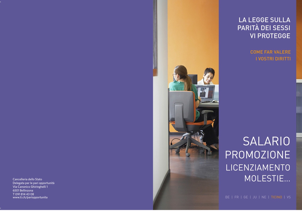 La Legge sulla parità dei sessi vi protegge – seconda edizione Segnaliamo la seconda edizione dell’opuscolo informativo “La Legge sulla parità dei sessi vi protegge – Come far valere i vostri diritti”. Avete il sospetto di essere pagate meno rispetto ai vostri... 12 Febbraio, 2018 Share